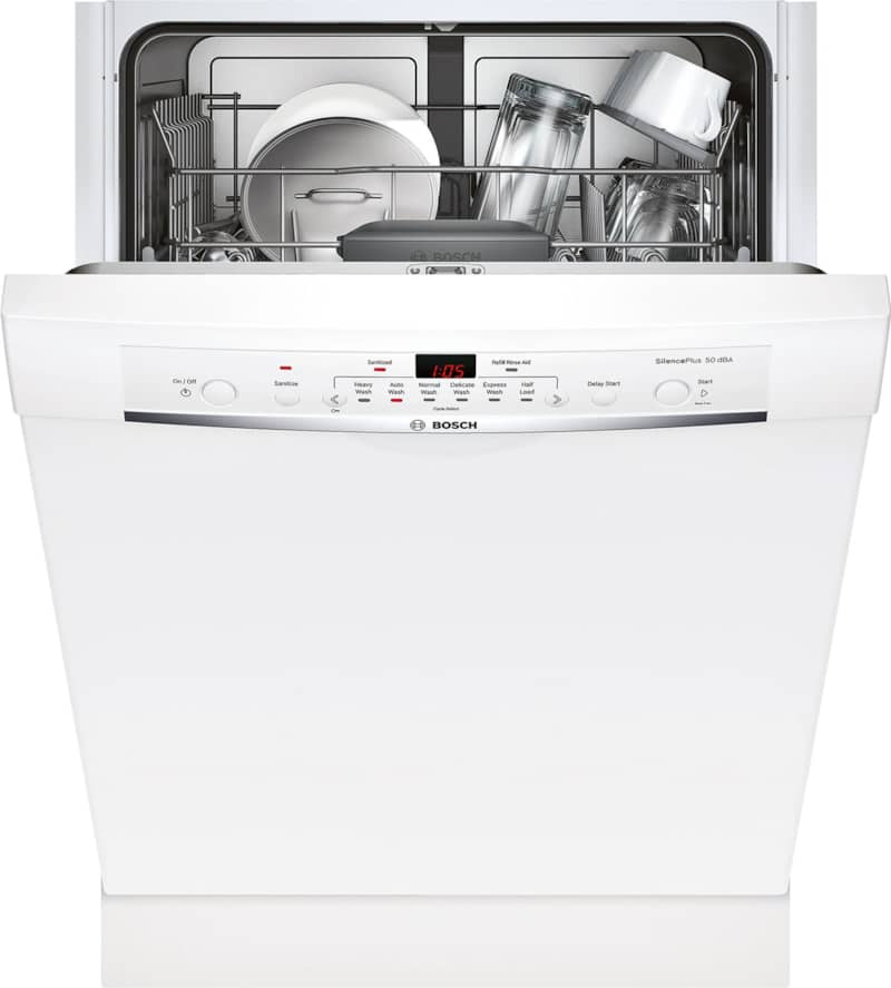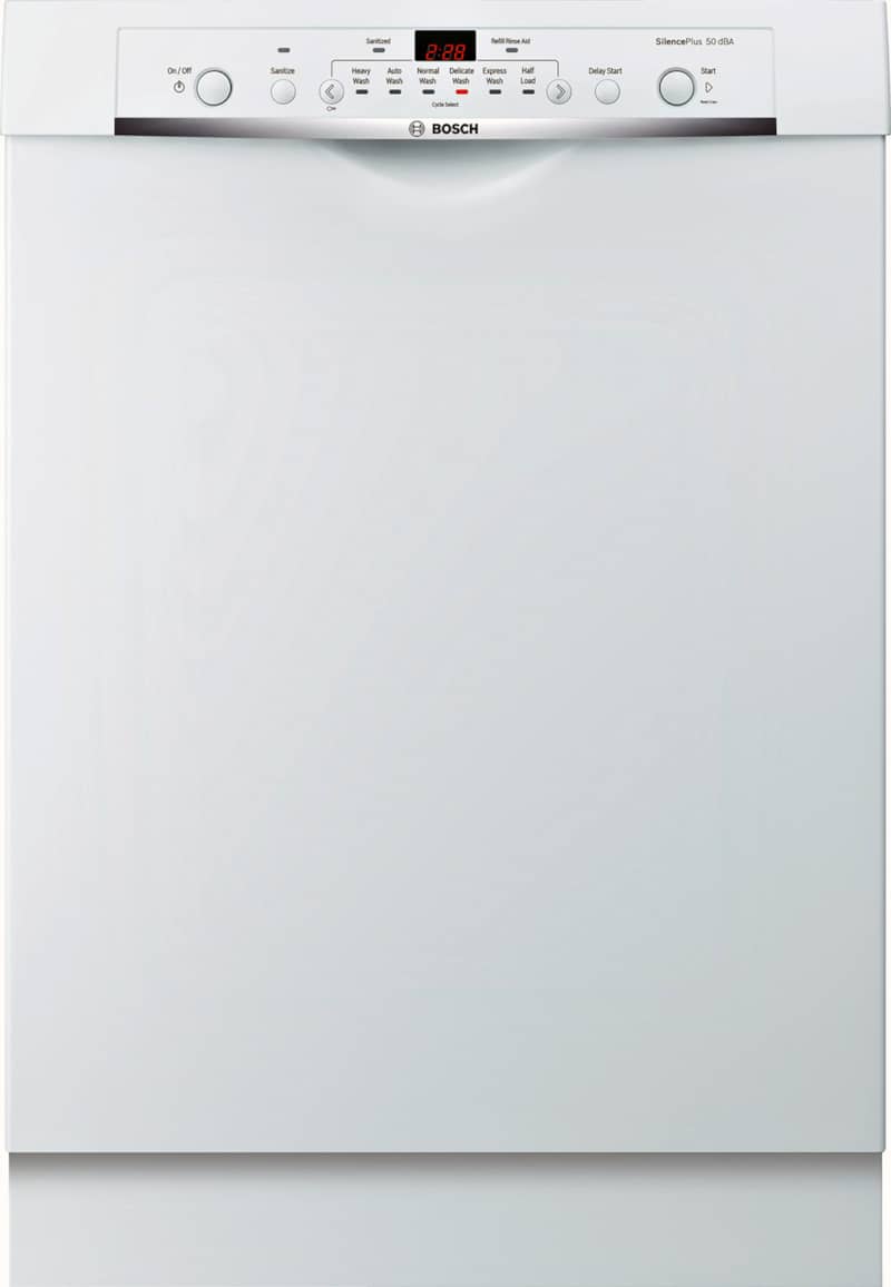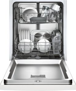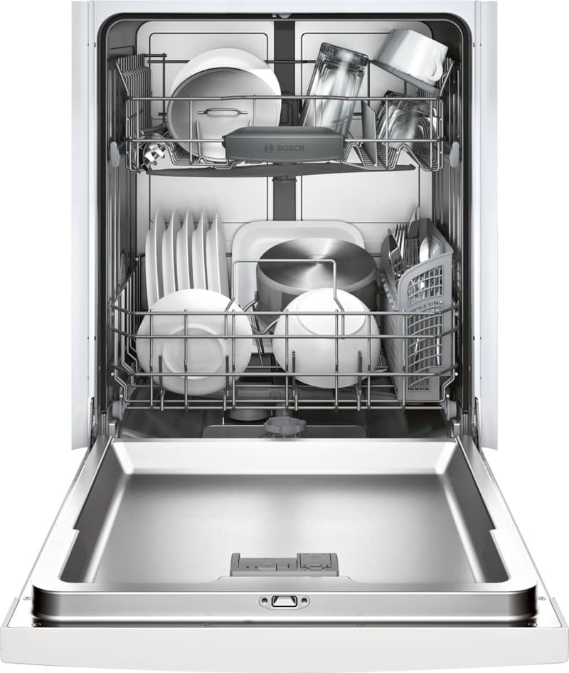 Bosch 100 Series Dishwasher: High-Powered, Low-VolumeBosch dishwashers pride themselves on creating some of the quietest models in North America, and with good reason. They have 18 sound reducing technologies that make this particular device so quiet that you can run it overnight without fear of loud bangs and bursts. The decision to purchase a dishwasher isn’t always easy, but there’s good reason why we chose this as one of our best white cleaners of 2021. There are so many great features adjustable to your household needs. The racks easily adjust to best suit your needs from large pots from last night’s dinner to a load of coffee cups you left on your desk. It fits up to 14 place settings, so it’s perfect for clearing off the remains of a dinner party, too. There are six settings, including a sanitation setting that will assure that any bacteria from yesterday morning’s over-easy egg stays off of your clean dishes. You can even run a half load to easily clear the dishes starting to pile up in your sink or a delicate cycle for your most precious China. With 24/7 Overflow Protection System? you can let the device run even if you won’t be home for an extended period of time. It’s a sensor system that will immediately shut down operations if a leak is detected. That’s one thing you won’t have to fret over. It’s substance, but it’s also style. This white Bosch 100 series dishwasher is the perfect addition to any modern all-white kitchen, it fits in with ease. This minimalist look comes with a cost savings: it’s less expensive than the stainless-steel version, but is just as sleek. Need more information to make your decision? Our appliance specialists are always on hand to answer any questions you might have. Simply call 847-954-4140 and you’ll be connected with one of our experienced sales professionals. Features