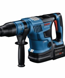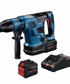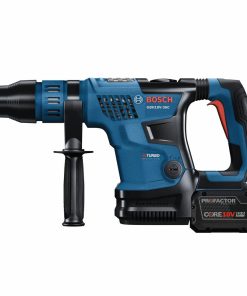 This 18V SDS-max? 1-9/16 In. rotary hammer is powerful enough to provide corded-type performance for tackling heavy-duty concrete drilling or chiseling jobs. The Bosch GBH18V-36C Hitman Rotary Hammer delivers 5.2 Ft.-Lbs. of impact energy (EPTA). That is unprecedented for a single 18V battery-driven 1-9/16 In. SDS-max? rotary hammer. It weighs 14.3 Lbs. (with included battery). This hammer is part of the PROFACTOR System, which pairs BITURBO Brushless Technology with a CORE18V PROFACTOR battery. BITURBO Brushless Technology is a high-performance motor and drive-train system designed to deliver power comparable to high-demand corded tools. The anti-vibration system features a longer air cushion in the hammer tube and dampeners in the handle The hammer has KickBack Control, rotary hammer and hammer-only modes, a reverse setting and Vario-Lock to rotate and lock the chisel. The hammer features an on-tool user interface for tool performance, feedback and control. This hammer features connectivity (module sold separately). The kit includes two CORE18V PROFACTOR 12.0 Ah PROFACTOR Exclusive batteries, which deliver at least 50% more runtime than the CORE18V 8.0 Ah PROFACTOR Performance Battery. At only 3.04 Lbs., this 12.0 Ah battery provides performance comparable to larger and heavier alternatives. The kit has a GAL18V-160C Hellion Battery Turbo Charger with a turbo power boost mode 16-amp charging power, which can charge a CORE18V PROFACTOR Exclusive battery to 50% in 22 minutes and 80%, in 36 minutes.