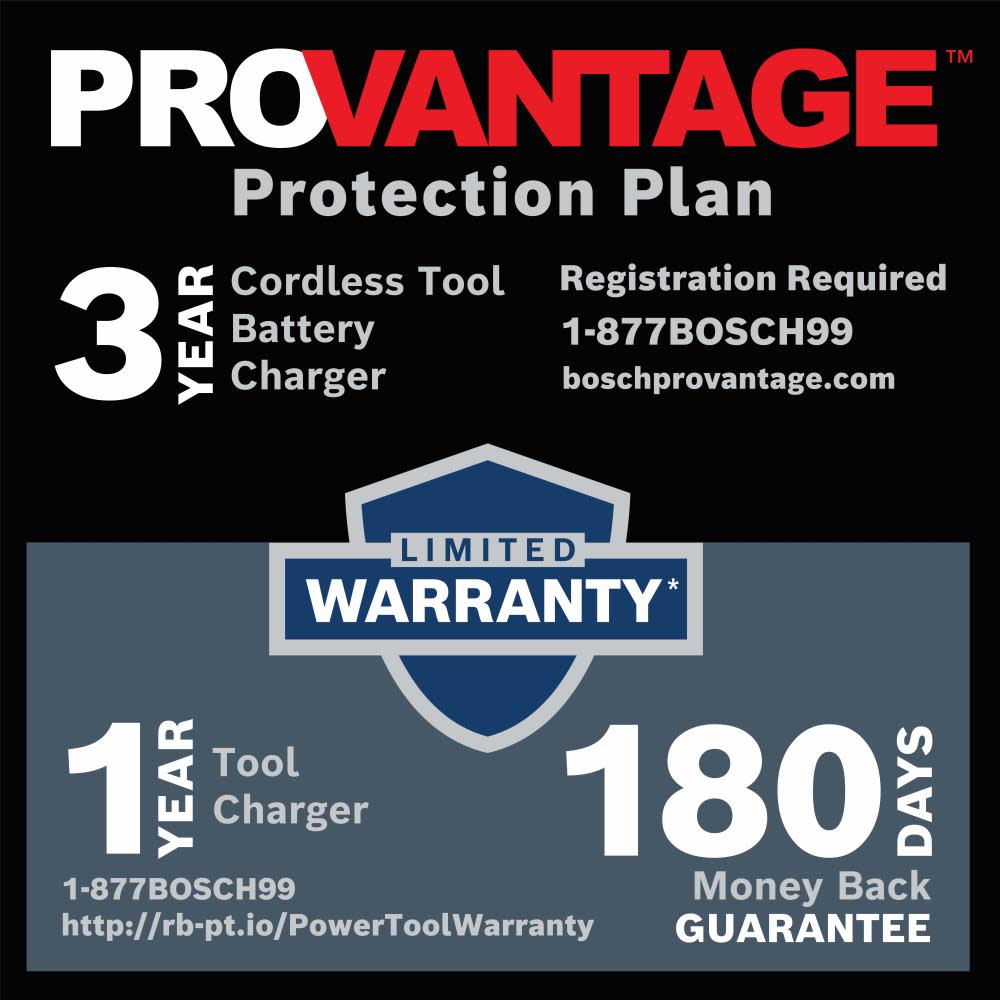 Bosch PROFACTOR cordless rotary hammers are backed by a 180-day no-question-asked return guarantee