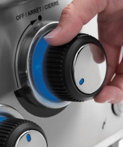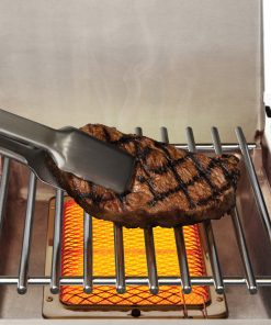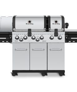 Regal? S 690 IR Pro features two totally independent ovens with 750 sq. in. of primary cooking space including stainless warming rack, solid 9 mm stainless steel cooking grids, stainless steel Flav-R-Wave? cooking system, 6 stainless steel Dual-Tube? burners, stainless steel side shelves, an enclosed cabinet base, handle lights and built-in control knob lights. The powerful infrared side burner has a solid 8 mm stainless steel cooking grid.