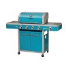 Grill up your favorite foods with this stylish, yet functional gas grill. It features (4) 12,000 Btu stainless steel burners for cooking up your main dishes, as well as a 10,500 Btu side burner for sides and dips. Integrated piezo ignition system. Dual-lined stainless steel hood. Vented porcelain coated flame tamers. Uses propane gas (tank sold separately). The storage compartment with doors is great for storing all your grilling tools. Dual-coated stainless steel grates. Assembled dimensions are 22.32 in D x 60.71 in W x 46.46 in H. Weighs 103.6 lb.