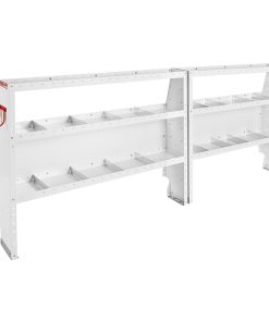 Includes 44in high adjustable cargo van shelving and a mesh van bulkhead with swinging door kit