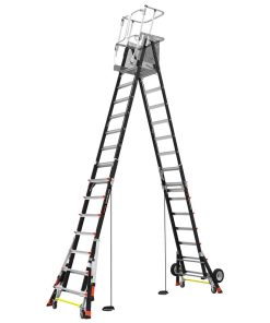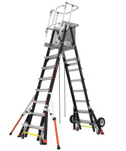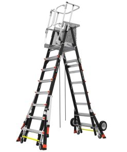 In many industries, company rules require professionals working at heights to tie off to a suitable anchor point before they can work with both hands. In some circumstances, these standards are often difficult or even impossible to keep, and often result in operators working in unsafe positions. And sometimes professionals are compelled to use expensive, time-consuming scaffolding systems. The Little Giant adjustable Safety Cage? is a versatile, safe alternative to tying off, and a much faster, much more inexpensive alternative to many scaffolding applications. The Cage is constructed of non-conductive, high-strength fiberglass-resin composite. The Cage is fully adjustable in one-foot increments, allowing the operator to adjust the platform height to the job at hand. Each side adjusts independently, so operators can also use the Cage over uneven surfaces or stairs, where a mechanical lift or ordinary stepladder could never go. And the Cage protects operators in a fully enclosed working platform, allowing them to work safely and quickly with two hands while complying with industry regulations. Time- and energy-saving Tip & Glide? wheels make it quick and easy to move from job to job. The Cage is also available with Wheel Lift? Casters that allow you to easily move the Cage from place to place while fully deployed.