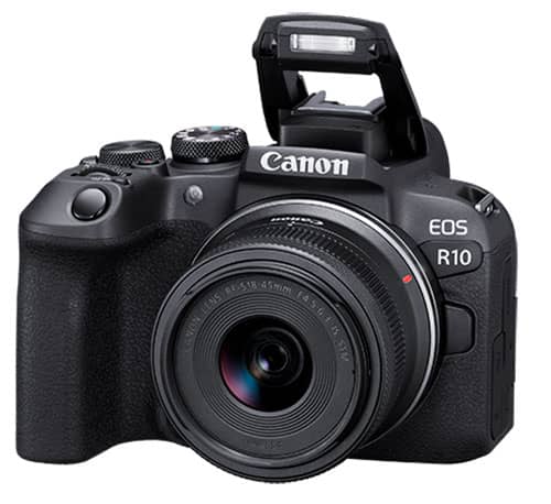 Canon 5331C009 EOS R10 Mirrorless Camera With RF-S18-45mm F4.5-6.3 IS STM Lens KitMore Than An Upgrade The EOS R10 is perfect for content creators looking to take their creativity to the next level. Featuring a high-speed shooting 15 FPS mechanical shutter1,2, a 24.2 Megapixel CMOS (APS-C) sensor, and lightning fast autofocus, the EOS R10 camera brings some of the best features from the growing EOS R Series to a sleek, lightweight design. RF-S18-45mm F4.5-6.3 IS STM As part of our new RF-S lens line, the RF-S18-45mm F4.5-6.3 IS STM gives you the flexibility you desire without taking up your whole camera bag. This lens was designed with smaller APS-C sensors in mind, and when attached to a full frame EOS R camera, automatically enables the 1.6x crop mode. It offers 100% x 100% Dual Pixel CMOS AF coverage for APS-C sensors, and 80% x 80% Dual Pixel CMOS AF coverage for Full Frame sensors (in crop mode). The small size of the RF-S18-45mm F4.5-6.3 IS STM and clever lens retraction mechanism lets it fit just about anywhere, making it a great lens to bring with you on a walk or wherever the day takes you. The lead screw-type stepping motor (STM) helps ensure smooth autofocus and quiet operation, letting you capture videos with great audio and minimal background noise so you won’t distract your subject in a quiet photo environment. Optical Image Stabilization provides up to 4 stops of correction, and up to 6 stops with Coordinated IS. This advanced image stabilization can result in sharper photos with minimal blur, even in low light situations. When you add all of this together, you get a wonderful, lightweight, and versatile lens that is designed to fit into your life. Features