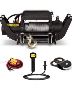 The Champion Power Equipment 11006 10,000 lb. Truck/SUV winch kit with a 3.6 HP (12 Volt) DC series wound motor is designed for powerful and reliable winching with your truck or SUV. With a gear reduction ratio of 216:1, this winch boasts a line speed of 3.9 Ft. per minute with a full load, and 15.7 Ft. per minute with no load. The 85 Ft. x 3/8 In. galvanized, super-duty aircraft cable is less prone to fraying, even when used in highly abrasive terrain, such as in rocks, mud, or sand. This incredibly strong cable is guided onto the 2.5 x 8.8 In. drum through the reliable roller fair lead to maximize the life of the cable. The efficient three-stage planetary gear system, dynamic braking system and Free spooling clutch along with the hand-held quick-connect remote control and 12 Ft. cable offer excellent control while winching. The included snatch block can be used to increase winching power or to aid in angled pulls. With a rated line pull of 10,000 Lbs., this winch installs quickly with our speed mount 2 In. hitch adapter, which features convenient 3-position adjustable handles that also serve as side guards to protect your winch. The speed mount hitch adapter is designed for quick and easy mounting, transportation and storage. To ensure you??ll have everything you need to start winching, in addition to the speed mount hitch adapter, you??ll also receive a roller fair lead, a hand-held quick-connect remote control, a snatch block and 6 Ft. battery lead cables. Champion support and our nationwide network of service centers will back up your purchase with a 2-year limited warranty and Free lifetime technical support.