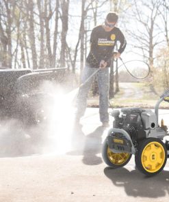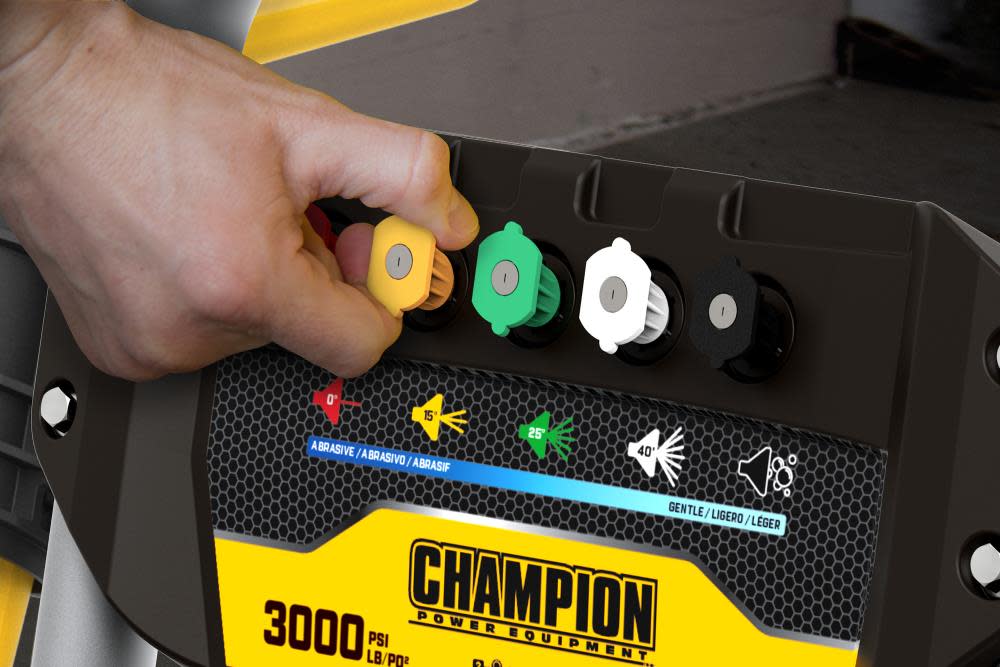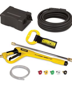 The Champion Power Equipment 100781 3000-PSI 2.3-GPM Gas Pressure Washer provides cost-effective, ??do-it-yourself?? cleaning power. This 3000-PSI pressure washer performs well under pressure no matter what the job. Whether your outdoor cleaning project involves your patio, deck, outdoor furniture, siding, fence, driveway, car, truck, boat, RV, farm equipment or something else, Champion??s low profile style pressure washer is designed for performance. The five quick-connect nozzles (0?, 15?, 25?,40?, soap) ensure maximum cleaning performance for any type of job. Extend your reach with the included 25-foot high-pressure hose. Use detergents hassle-free with the onboard 1-gallon detergent tank. The Annovi Reverberi axial cam pump is designed for high performance and long pump life, and will ensure consistent cleaning performance for everyday jobs. Champion??s low-profile design along with the 12-inch wheels make this pressure washer easy to maneuver. The handy hose storage strap plus onboard storage for the rubber high-pressure hose, trigger gun and spray wand ensure you??ll have what you need when you need it, plus you??ll be able to keep moving without having to stop and put things away. The durable steel frame is built to last. Powered by a 160cc GC160 Honda single-cylinder OHC engine with a 0.5-gallon fuel tank and designed with a low oil shut-off sensor, this unit has a 0.6 qt. oil capacity (recommended 10W-30 oil plus funnel are both included). This pressure washer is CARB certified. Buy with confidence – Champion Support and our nationwide network of service centers will back your purchase up with a 2-year limited warranty and FREE lifetime technical support.