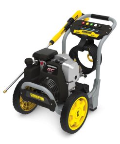 The Champion Power Equipment 100783 3200-PSI 2.5-GPM Gas Pressure Washer provides cost-effective, ??do-it-yourself?? cleaning power. This 3200-PSI pressure washer performs well under pressure no matter what the job. Whether your outdoor cleaning project involves your patio, deck, outdoor furniture, siding, fence, driveway, car, truck, boat, RV, farm equipment or something else, Champion??s low profile style pressure washer is designed for performance. It??s important to have the right nozzle for the job, since the size of the nozzle affects water flow and pressure. The five quick-connect nozzles (0?, 15?, 25?,40?, soap) ensure maximum cleaning performance for any type of job. Extend your reach with the included 25-foot high-pressure hose. Use detergents hassle-free with the onboard 1-gallon detergent tank. The Annovi Reverberi axial cam pump is designed for high performance and long pump life, and will ensure consistent cleaning performance for everyday jobs. Champion??s low-profile design along with the 12-inch wheels make this pressure washer easy to maneuver. The handy hose storage strap plus onboard storage for the rubber high-pressure hose, trigger gun and spray wand ensure you??ll have what you need when you need it, plus you??ll be able to keep moving without having to stop and put things away. The durable steel frame is built to last. Powered by a 187cc GC190 Honda single-cylinder OHC engine with a 0.5-gallon fuel tank and designed with a low oil shut-off sensor, this unit has a 0.6 qt. oil capacity (recommended 10W-30 oil plus funnel are both included). This pressure washer is CARB certified. Buy with confidence – Champion Support and our nationwide network of service centers will back your purchase up with a 2-year limited warranty and FREE lifetime technical support.