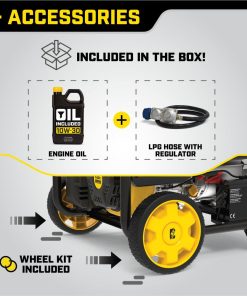 Operate your 7500-watt portable generator right out of the box on either gasoline or propane, plus the unit holds 1.2-quarts of oil (included) and has a low oil shut-off sensor