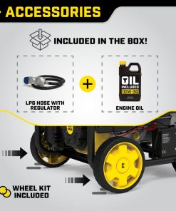 Power up the 459cc Champion engine with the handy rocker switch, battery included