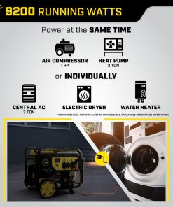 Operate your 9200-watt portable generator right out of the box on either gasoline or propane