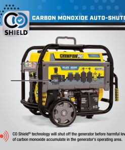 The Champion Power Equipment PRO 100430 6500-Watt Professional Grade Portable Generator with CO Shield is specifically designed for the jobsite. The 389cc Champion commercial-grade OHV engine has what it takes to handle multiple tools for efficiency, plus Cold Start Technology means no delays. The Idle Control feature conserves fuel for you, plus the clean power alternator produces low THD electricity. The Intelligauge with Power Meter monitors voltage, frequency, operating hours and power output, while Volt Guard built-in surge protector prevents overloads. The locking handle and never flat tires make it easy to move your power over unfinished surfaces. The extreme-duty steel cage protects your generator in rough environments, plus the steel lift hook makes forklift or crane transport a cinch. Equipped with OSHA compliant full panel GFCI protection, all outlets have protective covers and include a 120/240V 30A (L14-30R Twist Lock), a 120V 30A (L5-30R Twist Lock), and two 120V 20A 5-20R Weather-Resistant Duplex outlets. Fill up the 8.5-gallon tank of gasoline, run at 50% and enjoy up to 12.5 hours of power. This unit has a low oil shut-off sensor. Buy this EPA certified and CARB compliant generator with confidence ?C Champion Support and our nationwide network of service centers will back up your purchase with a 3-year limited warranty and FREE lifetime technical support. CO Shield technology monitors the accumulation of carbon monoxide (CO), a poisonous gas produced by engine exhaust when the generator is running. If CO Shield detects unsafe elevated levels of CO gas, it automatically shuts off the engine. CO Shield is not a substitute for an indoor carbon monoxide alarm or for safe operation. DO NOT allow engine exhaust fumes to enter a confined area through windows, doors, vents or other openings. Generators must ALWAYS be used outdoors, far away from occupied buildings with engine exhaust pointed away from people and buildings.