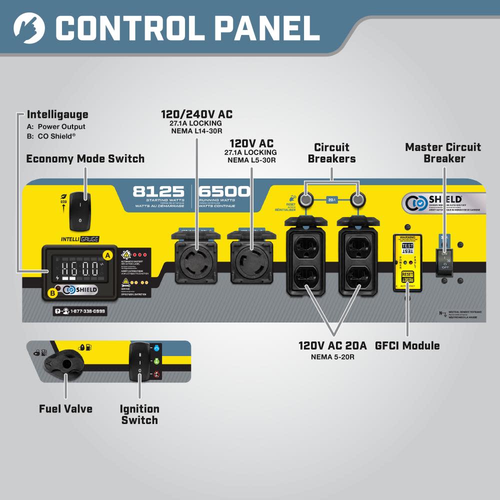 Equipped with OSHA jobsite compliant GFCI protection and Volt Guard to stop power surges plus CO Shield carbon monoxide auto shutoff system as an added benefit
