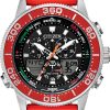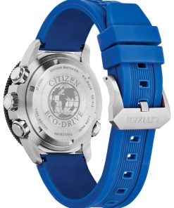 Citizen Eco-Drive Promaster Skyhawk 44mm Chronograph Watch w/ Black Dial & Blue Polyurethane Strap, Model JR4068-01EFor avid marine sportsmen who value style as much as function, Citizen??s Promaster Sailhawk with Eco-Drive technology is the perfect combination of the two. With a blue polyurethane strap and numbering detail, offset with a stainless steel case, black aluminum bezel and dial, this watch isn??t blending into the background. And with features such as a yacht racing timer, a 99-minute countdown timer, two separate alarms, split lap times, the ability to show the time in 30 cities worldwide, and water resistance up to 200 meters, there is no water-based activity this timepiece can??t handle with ease. Features Movement Technology
