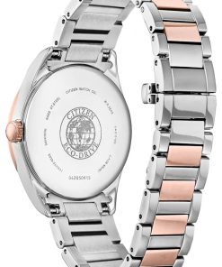 Citizen Eco-Drive Arezzo 32mm Watch w/ White Mother-Of-Pearl Dial & Two-Tone Silver/Pink Gold-Tone Ion-Plated Stainless Steel Bracelet, Model EM0876-51DThe Arezzo from Citizen is a feminine timepiece that will work hard as it looks great. The two-tone, pink gold stainless-steel 32mm case and two-tone pink gold stainless-steel bracelet are offset with a white mother of pearl dial with Roman numerals and inset diamonds for the perfect touch of elegance. The slightly oversized profile is easy to wear and easy to use, making it as functional as it is beautiful. And with Eco-Drive technology, it is powered by light and will always be ready when you are. Features Movement Technology