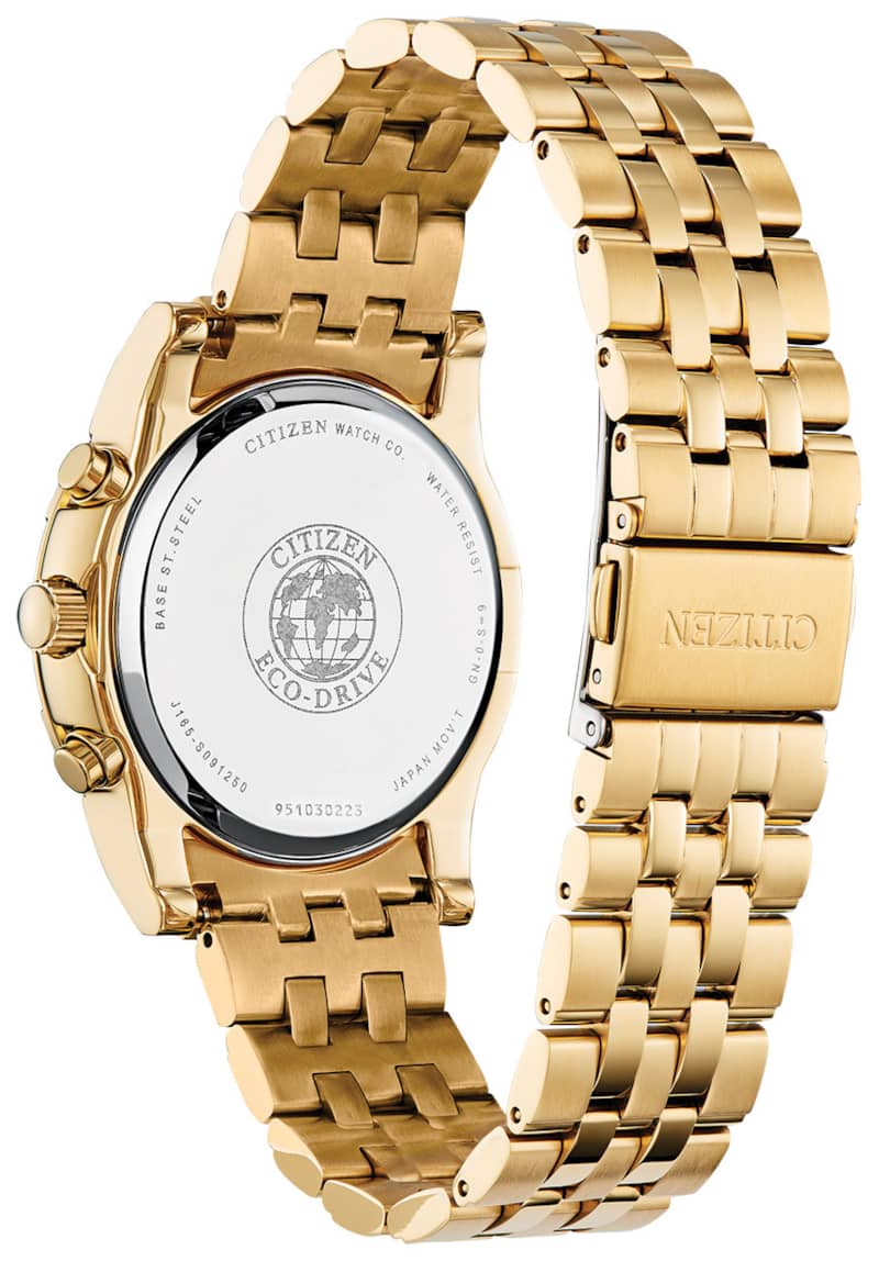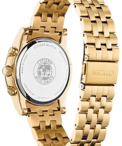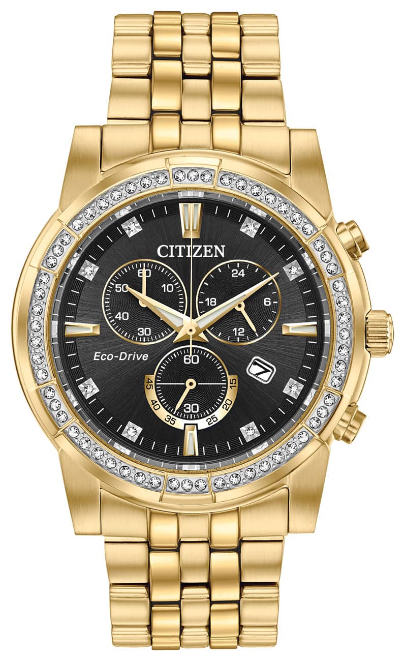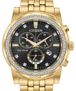 Citizen Eco-Drive Crystal Chronograph Black Dial Gold-Tone Ion-Plated SS Bracelet Watch, 42mm