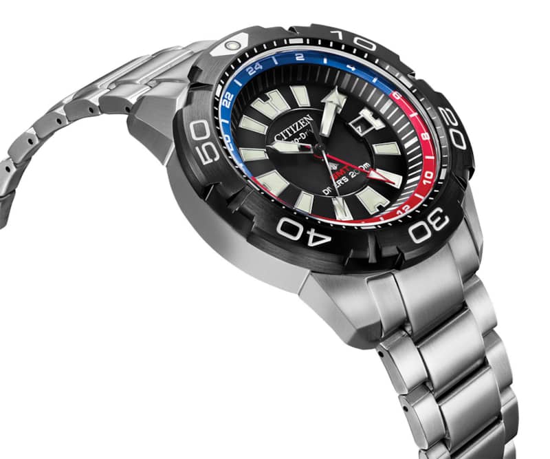 Citizen Eco-Drive Promaster GMT Black w/ Red Accents Dial Silver-Tone SS Bracelet Watch, 44mm