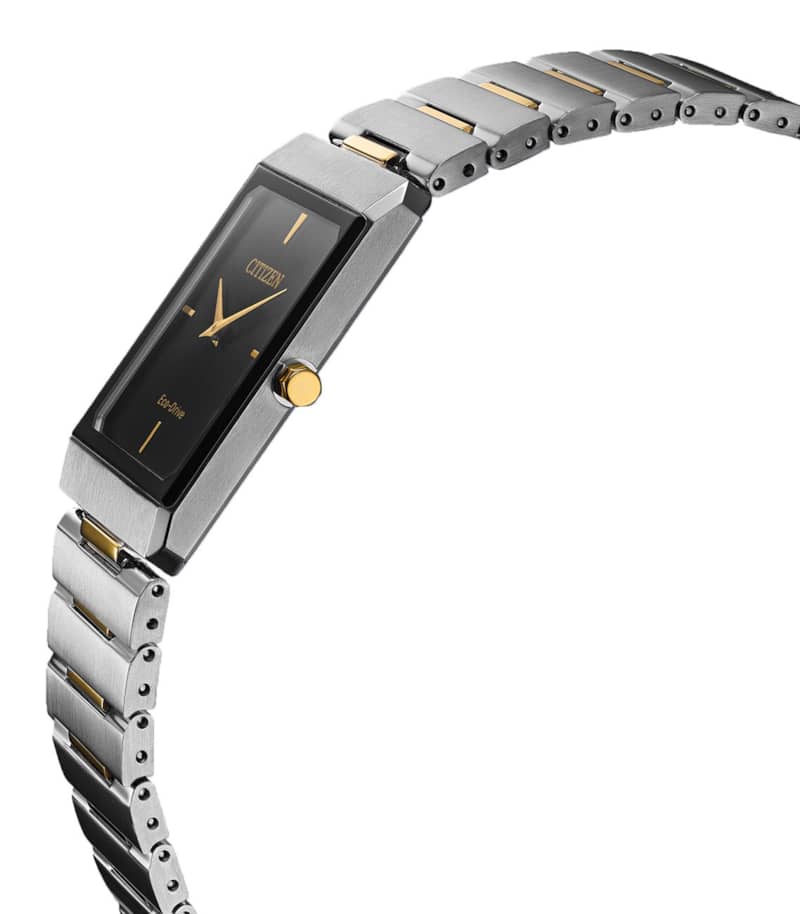 Citizen Eco-Drive Stiletto Black Dial Two-Tone Ion-Plated SS Bracelet Watch, 28mm x 38mm