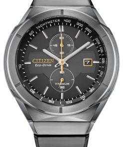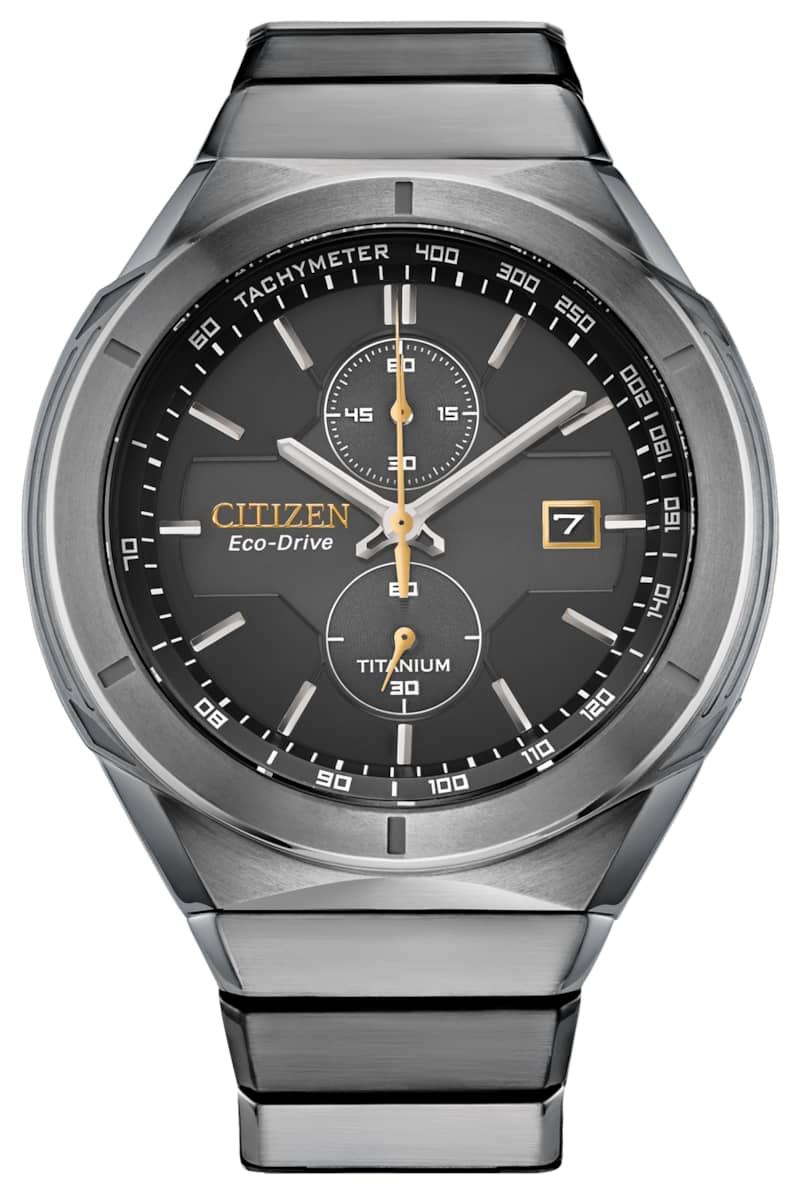 Citizen Super Titanium Armor 44mm Chronograph Watch w/ Grey Dial w/ Yellow Accents & Super Titanium Bracelet, Model CA7058-55ETitanium is the fourth most abundant structural metal on Earth. An incredible and lightweight material that doesn??t react to sunlight, saltwater or body chemistry, it reduces the potential of metal allergic reaction and is corrosion-resistant. In 1970, we launched the world??s first watch using solid titanium: the X-8 Chronometer. The name is a combination of X ?C representing the unknown ?C and 8, evoking the infinity symbol. It??s an expression of the boundless possibilities of titanium, a relatively unknown material at the time. We went on to build our Super Titanium? collection, producing notable timepieces throughout the year. Features Movement Technology