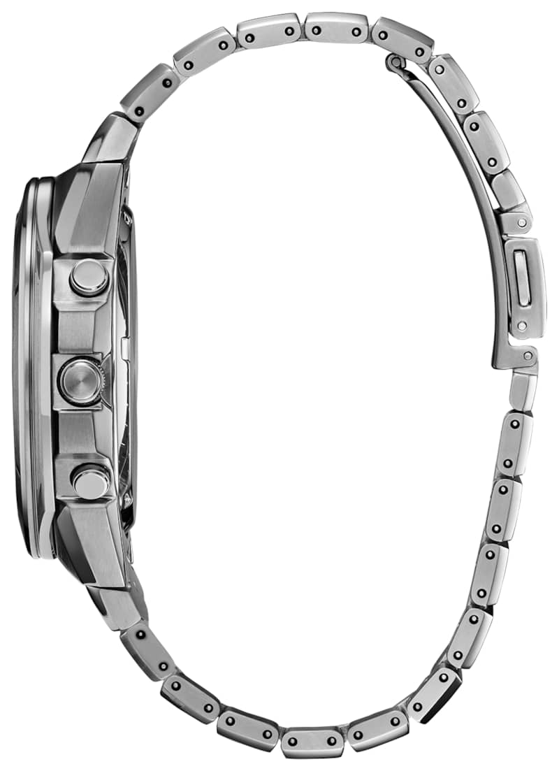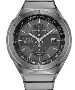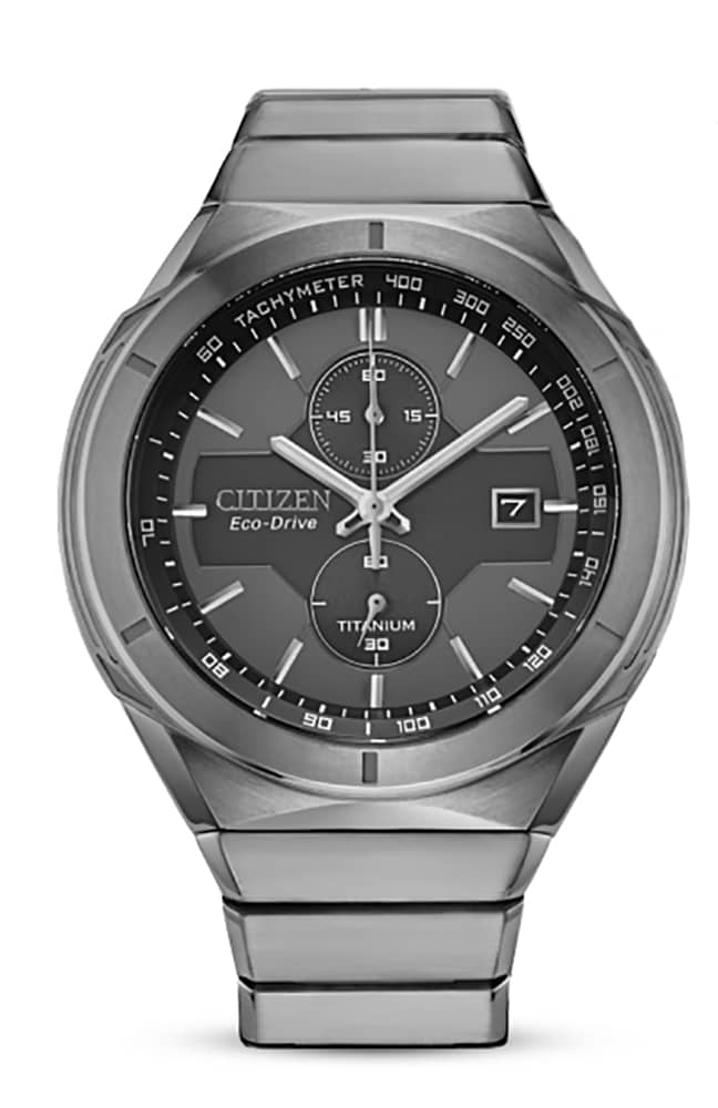 Citizen Super Titanium Armor 44mm Chronograph Watch w/ Grey Dial & Super Titanium Bracelet, Model CA7050-57HTitanium is the fourth most abundant structural metal on Earth. An incredible and lightweight material that doesn??t react to sunlight, saltwater or body chemistry, it reduces the potential of metal allergic reaction and is corrosion-resistant. In 1970, we launched the world??s first watch using solid titanium: the X-8 Chronometer. The name is a combination of X ?C representing the unknown ?C and 8, evoking the infinity symbol. It??s an expression of the boundless possibilities of titanium, a relatively unknown material at the time. We went on to build our Super Titanium? collection, producing notable timepieces throughout the year. Features Movement Technology