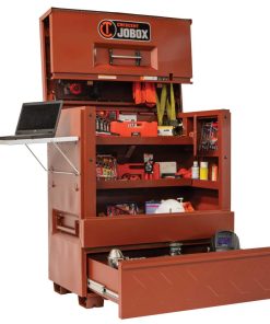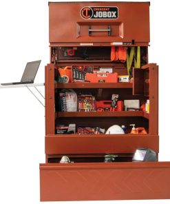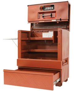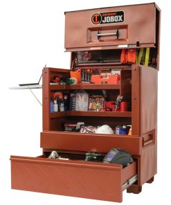 Crescent JOBOX is the leader in on-site storage security, organization, and safety with its high-strength, chamfered lid, commercial gas springs* for lid control and its site-vault security system. High capacity drawer storage with up to 500lb capacity. 4-Way EZ-Loader skid bolsters and slip-resistant textured powder paint help provide safety and handling ease (* on 42″ and longer chests).