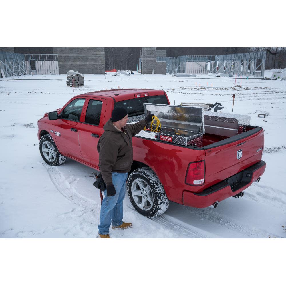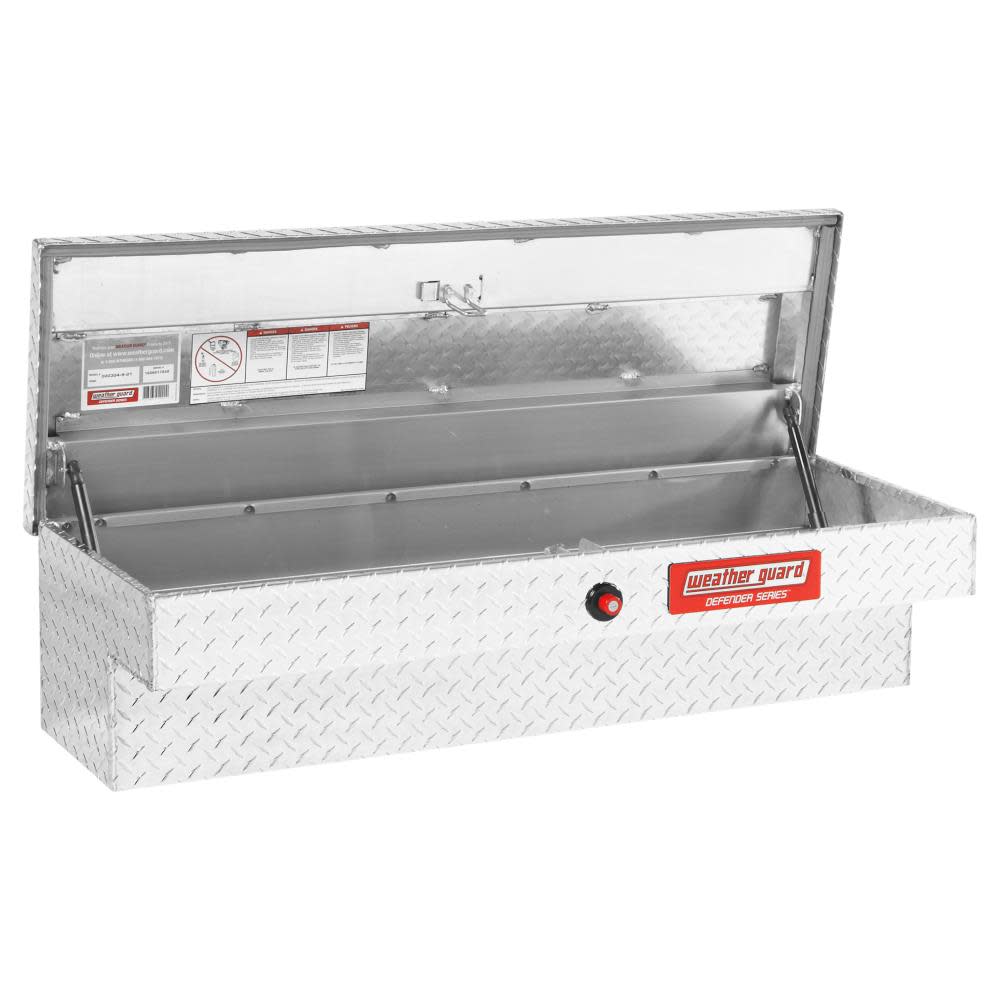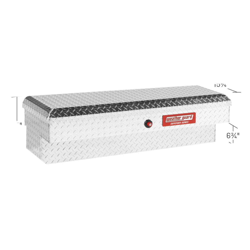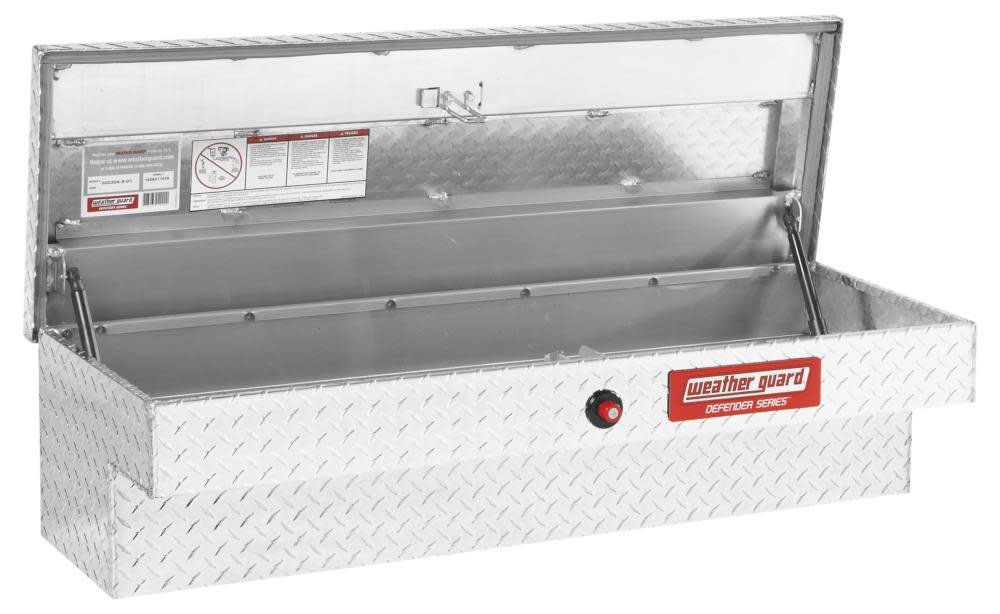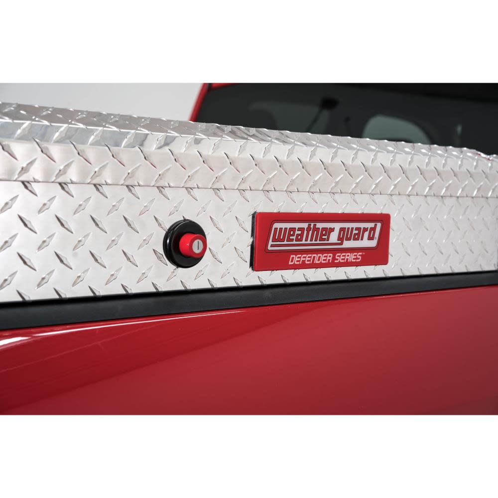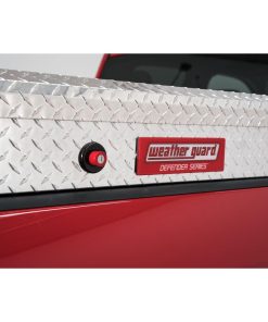 The 3.3 Cu. Ft. WEATHER GUARD? DEFENDER SERIES? model 300304-9-01 lo-side box provides professional protection. This new lo-side box includes a tamper-resistant push-button lock, steel reinforced, looped strikers, D-shaped ribbed weather stripping, and heavy-duty four-piece welded aluminum box construction. It also has a seven year warranty.