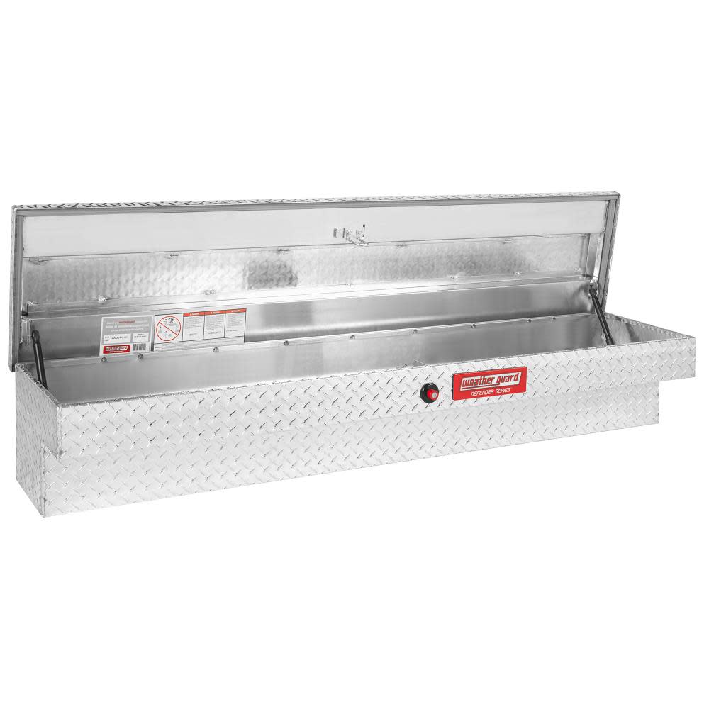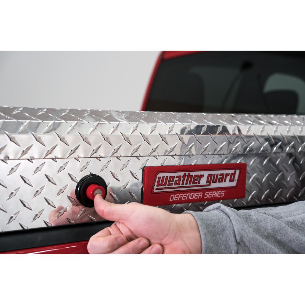 The 5.2 Cu. Ft. WEATHER GUARD? DEFENDER SERIES? model 300301-9-01 lo-side box provides professional protection. This new lo-side box provides a tamper-resistant push-button lock, steel reinforced, looped strikers, D-shaped ribbed weather stripping and heavy-duty four-piece welded aluminum box construction. It also comes with a seven year warranty.