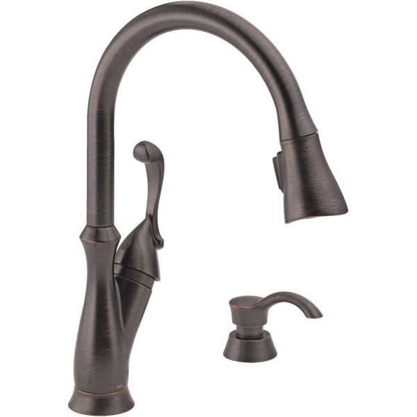 Delta Arabella Single Handle Lever Pull-Down Kitchen Faucet with Soap Dispenser, Venetian Bronze