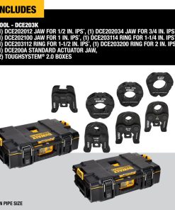 DEWALT 1/2″ to 2″ Standard IPS Press Jaws & Rings with Toughsystem 2.0 Tool Boxes
