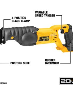 DCS381 Cordless Reciprocating Saw with keyless blade clamp allows for quick blade changes without touching the blade or reciprocating shaft
