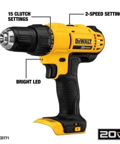 DCD771 CordlessDrill/Driver has a high-performance motor that delivers 300-unit watts out (UWO) of power ability completing a wide range of applications