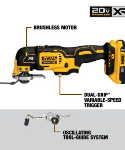 DCS355 20-volt max Lithium ion oscillating tool Quick-Change accessory system allows blades and attachments to be changed quickly without wrenches
