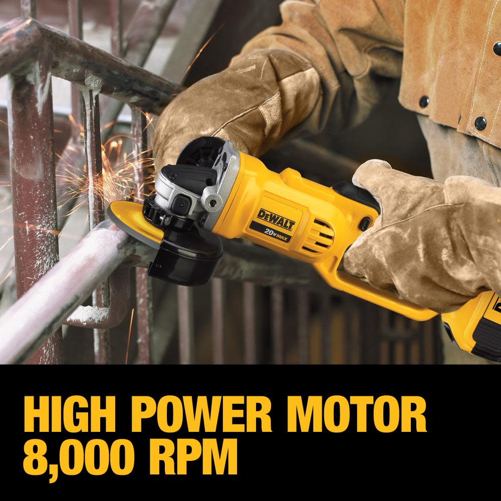 DCG412 20-volt max Lithium ion 4-1/2-in grinder 7,000 RPM motor provides high power for cutting and grinding applications