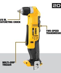 DCD740 20-volt MAX lithium ion 3/8-in right angle drill provides dual speed ranges (0-650/0 to 2000 RPM) for increased user flexibility for a wide range of applications