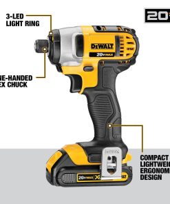 DCF885 20-volt max Lithium ion 1/4-in impact driver features 3 LED lights with 20 second delay to provide visibility without shadows