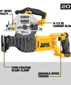 DCS381 20-volt max Lithium ion reciprocating saw with keyless blade clamp allows for quick blade change without touching blade or reciprocating shaft