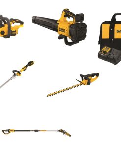 This ultimate 5 tool outdoor power equipment kit has what you need to conquer your yard! Includes: DCCS620B DEWALT 20V MAX* Compact Brushless Cordless Chainsaw, DCBL722B 20 V MAX* Lithium Ion XR? Brushless Handheld Blower, DCST922B 20V MAX* 14 in. Folding String Trimmer, DCHT820B 20V MAX* Lithium Ion Hedge Trimmer, DCPS620B 20V MAX* Brushless Pole Saw, and DCB205-2CK 2-Pack 20V 5.0 Amp Hours Lithium Power Tool Batteries.