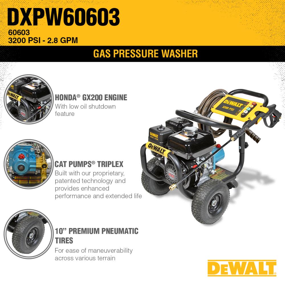 DEWALT DXPW60603 3200 PSI at 2.8 GPM HONDA with CAT Triplex Plunger Pump Cold Water Professional Gas Pressure Washer