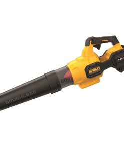 The DEWALT FLEXVOLT 60V MAX Chainsaw and Blower Bundle pairs up the DCCS670X1 16″ Chainsaw and DCBL772B Blower. The chainsaw features a low kick back 16 In. Oregon bar and chain for both construction and outdoor cutting applications. Its tool-free chain tensioning and bar tightening knob enable proper bar clamping force, and it features auto-oiling for continuous lubrication. The blower powers through your task with up to 600 CFM of air volume and 125 mph. It features a variable speed trigger and speed lock to control the blower output. The brushless motor design is high efficiency to provide high power and helps extend runtime.