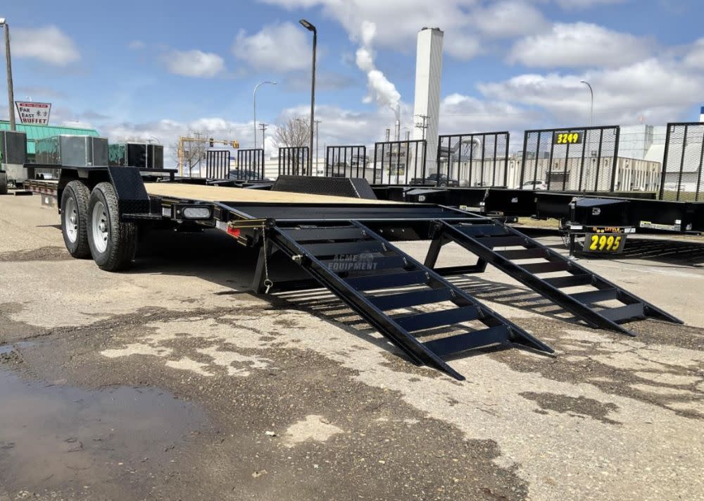 New DOOLITTLE Xtreme HD Pro Series Equipment Trailer, 20′ Tandem Axle, Lockable Tongue Box, Front Pipe-Top Bump Rail, Front E-Z Steps, (4) D-Rings, Stake Pockets, Rub Rail, 24″ Cleated Dove-Tail, 50″ Flip-Up Knee Ramps, Silver Steel Rims, Radial Tires. Do all your Heavy-duty hauling with Xtreme by Doolittle. Tandem Axle Flatbeds, customized with deluxe components for the extreme ??Long Haul??. The Doolittle 7′ x 20″ equipment hauler can carry heavy loads.