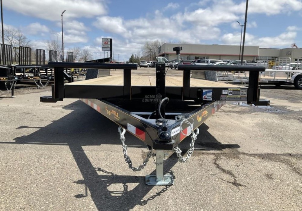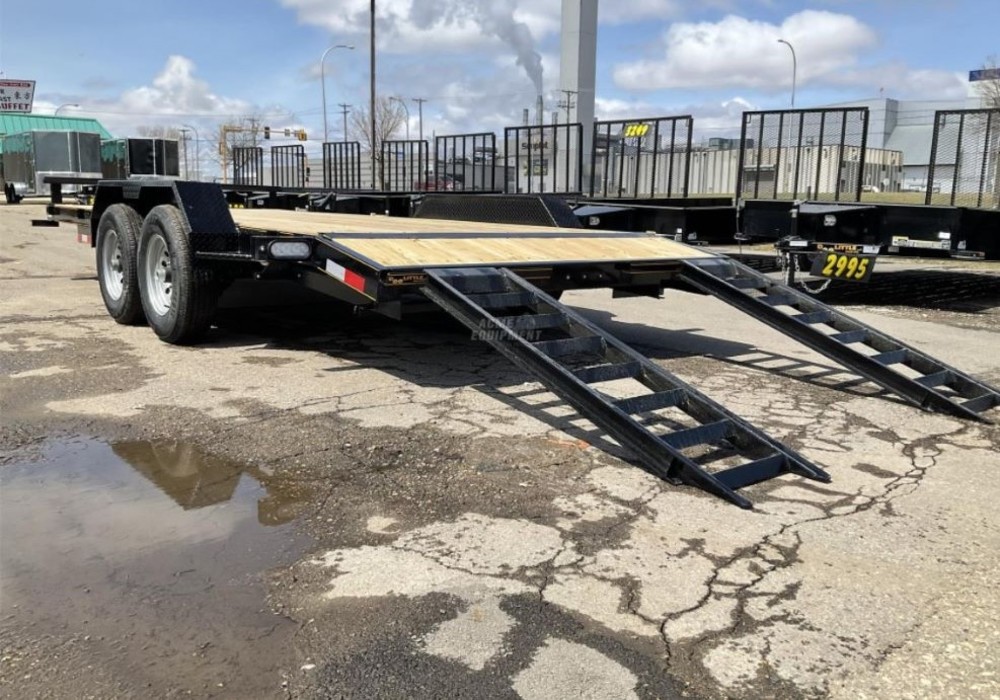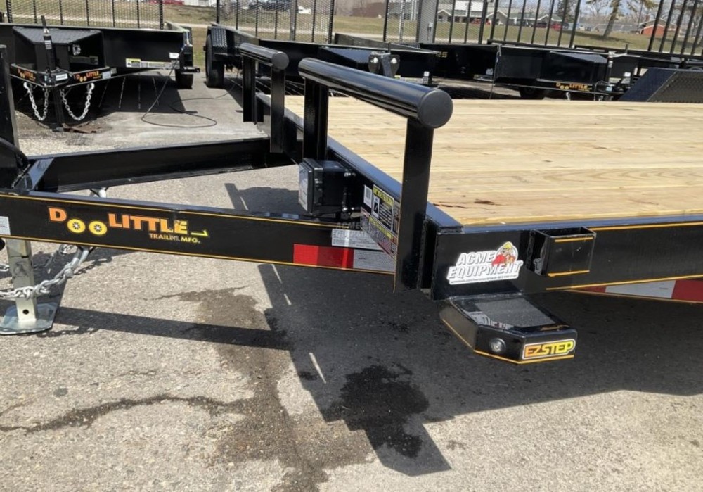 New DOOLITTLE Channel Flatbed HD Pro Series Equipment Trailer, 18′ Tandem Axle, Pipe-Top Front Bump Rail, (2) Front E-Z-Steps, Spare Tire Carrier, Stake Pockets, 24″ Dove Tail, 60″ Slide-In Ramps, Silver Rims, Radial Tires. The Doolittle CF Series Trailers are light enough to haul your cars, utv’s, and recreational craft, but heavy enough to haul your skid steers and excavators.