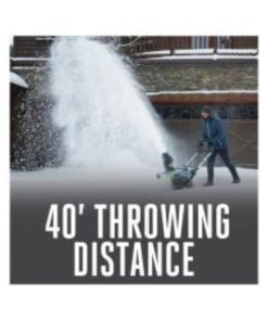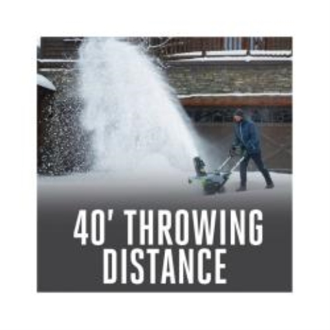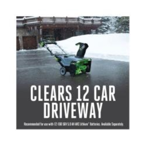 The new EGO POWER+ snow blower delivers the power and performance of gas without the noise, fuss and fumes. Featuring Peak Power™ Technology, it combines the power of any two EGO 56 V ARC Lithium™ batteries for the power to clear heavy, wet snow with a throwing distance up to 40 ft. Built with a high-efficiency brushless motor and steel auger, the EGO POWER+ snow blower handles what the city snow plow leaves behind with ease; cutting through ice and snow 50% faster. The EGO POWER+ snow blower has the power to handle tough jobs fast without the noise, fuss and fumes of gas.