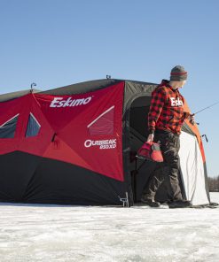 Don??t trip. Stay warm. Fish longer. With 114 square feet of fishable area, the Outbreak 850XD is the largest shelter Eskimo has ever made. Loaded with plenty of space and features, the 850XD will ensure your trip is warm and comfortable, no matter how long you decide to stay. Best of all, its oversized, trip-proof door makes loading and unloading quicker and easier, so you can focus on fishing. Available in 5 different sizes??all featuring premium StormShield? insulated fabric??the Outbreak? series of pop-ups has you covered, without tripping you up. If you like to ice camp, fish in large groups, or just have extra room for comfort, check out the Outbreak 850XD.