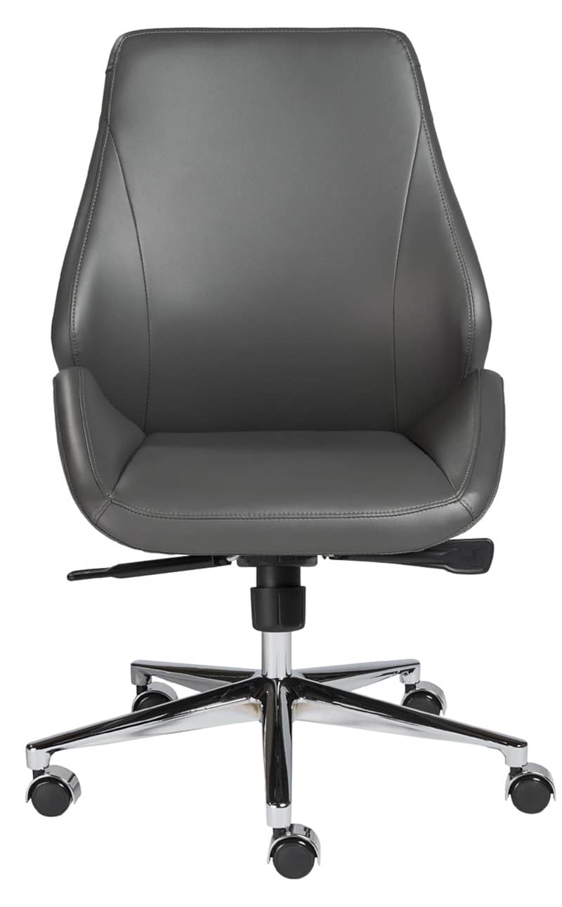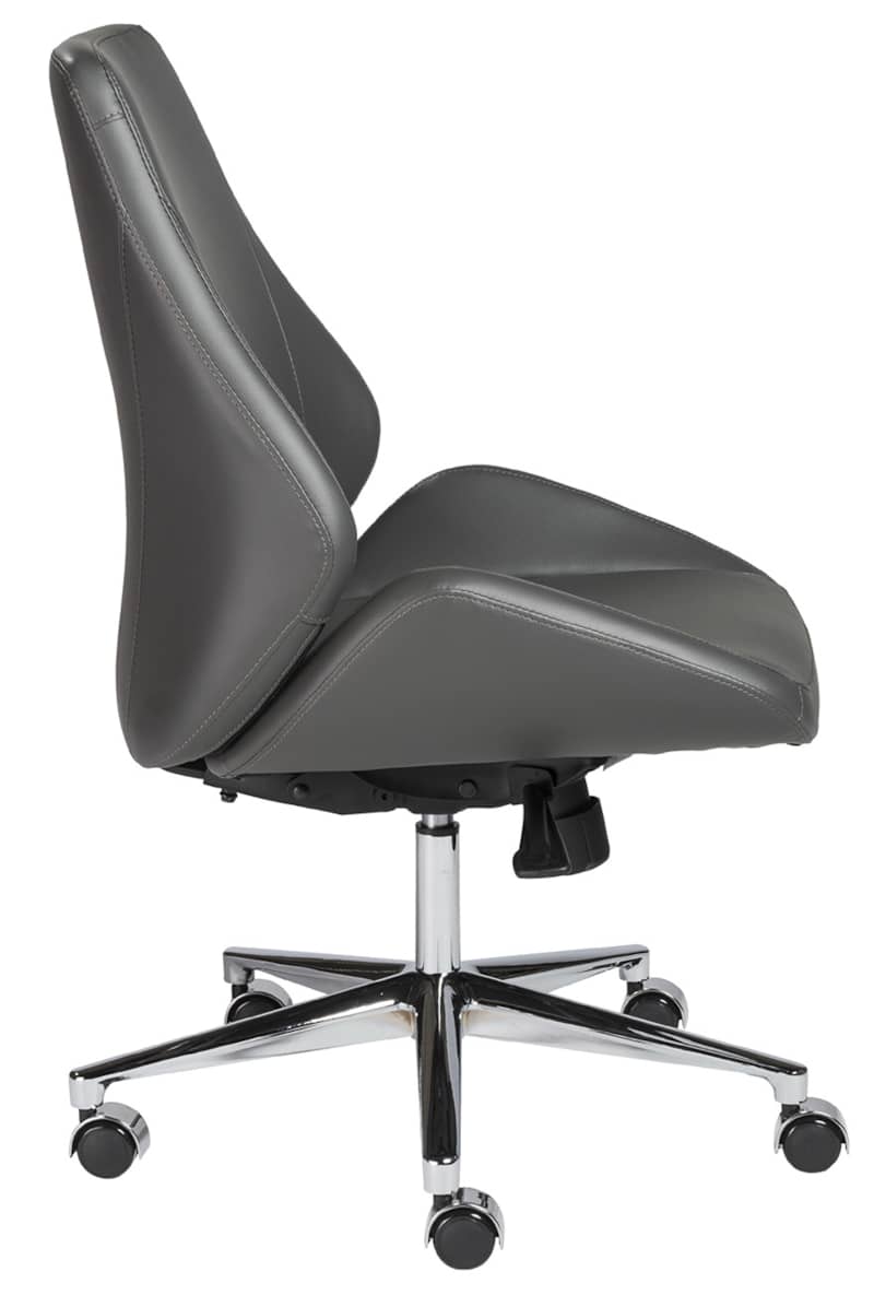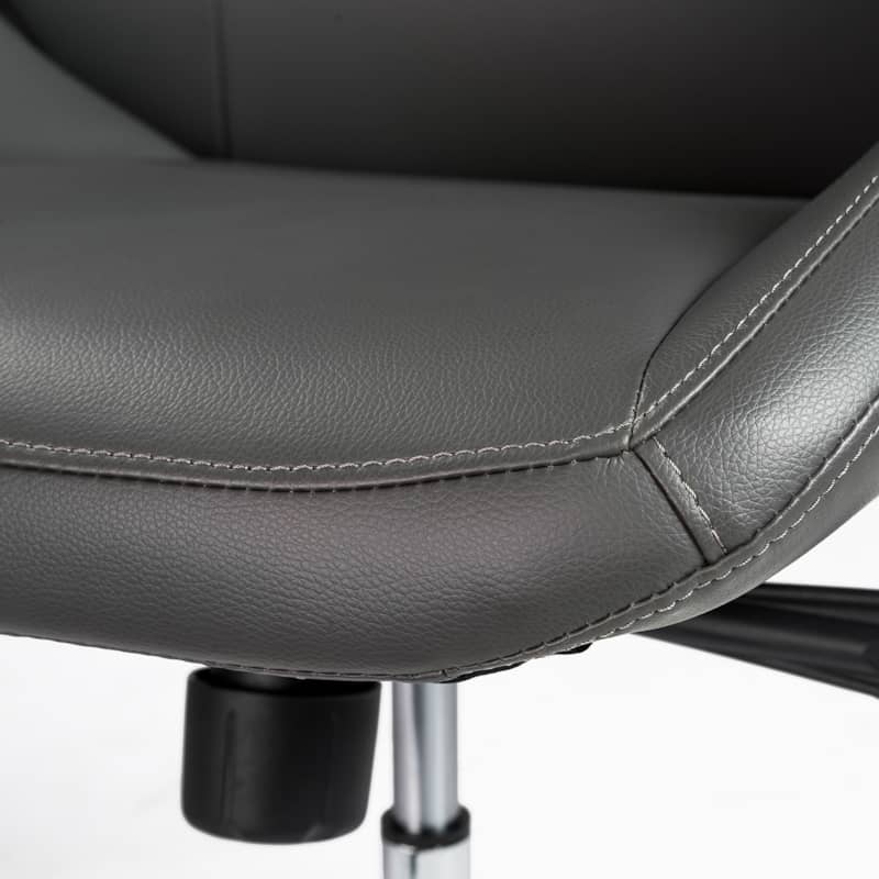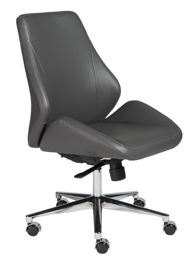 Euro Style 00470GRY Bergen Gray Low Back Office Chair w/ Chrome Aluminum BaseThe Bergen Office Chair is very modern looking with an ingenious seat and back. It looks like one graceful piece, but for added comfort and give, it??s two pieces, a separate seat and back. There is a space where the two would ordinarily come together. The result is remarkable comfort in very classy chair. Gorgeous. Features