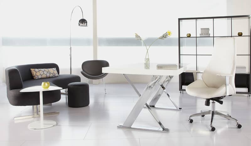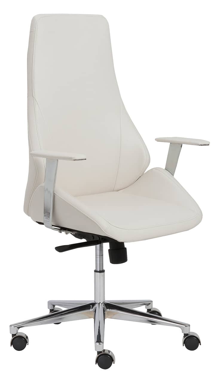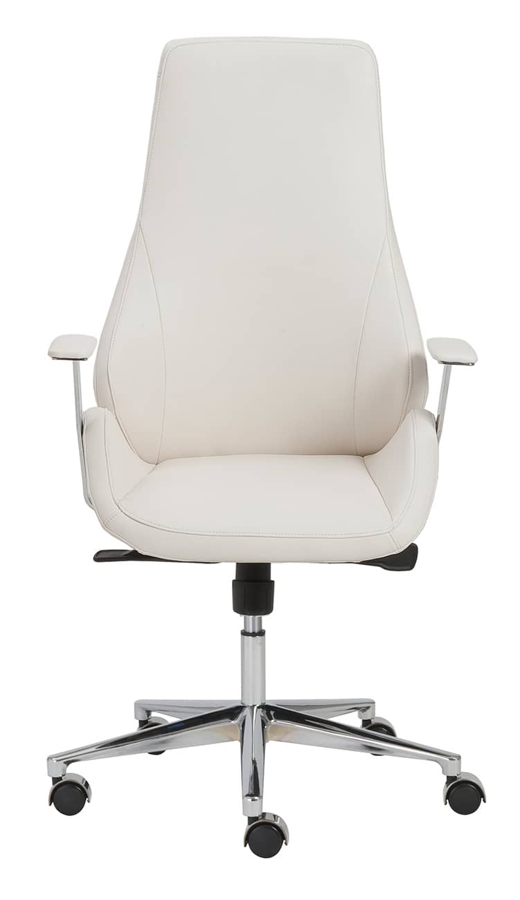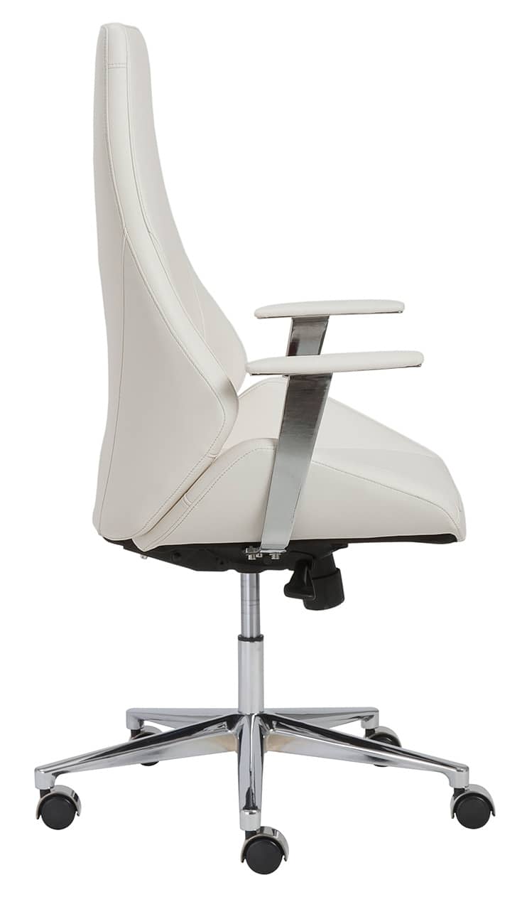 Euro Style 00474WHT Bergen White High Back Office Chair w/ Chrome Steel BaseThe Bergen Office Chair is very modern looking with an ingenious seat and back. It looks like one graceful piece, but for added comfort and give, it??s two pieces, a separate seat and back. There is a space where the two would ordinarily come together. The result is remarkable comfort in very classy chair. Gorgeous. Features