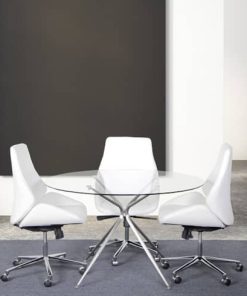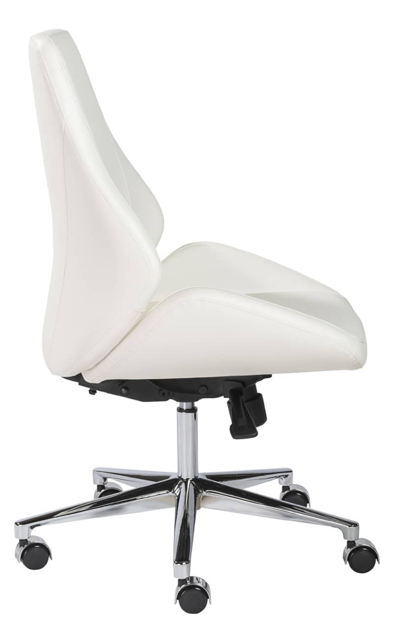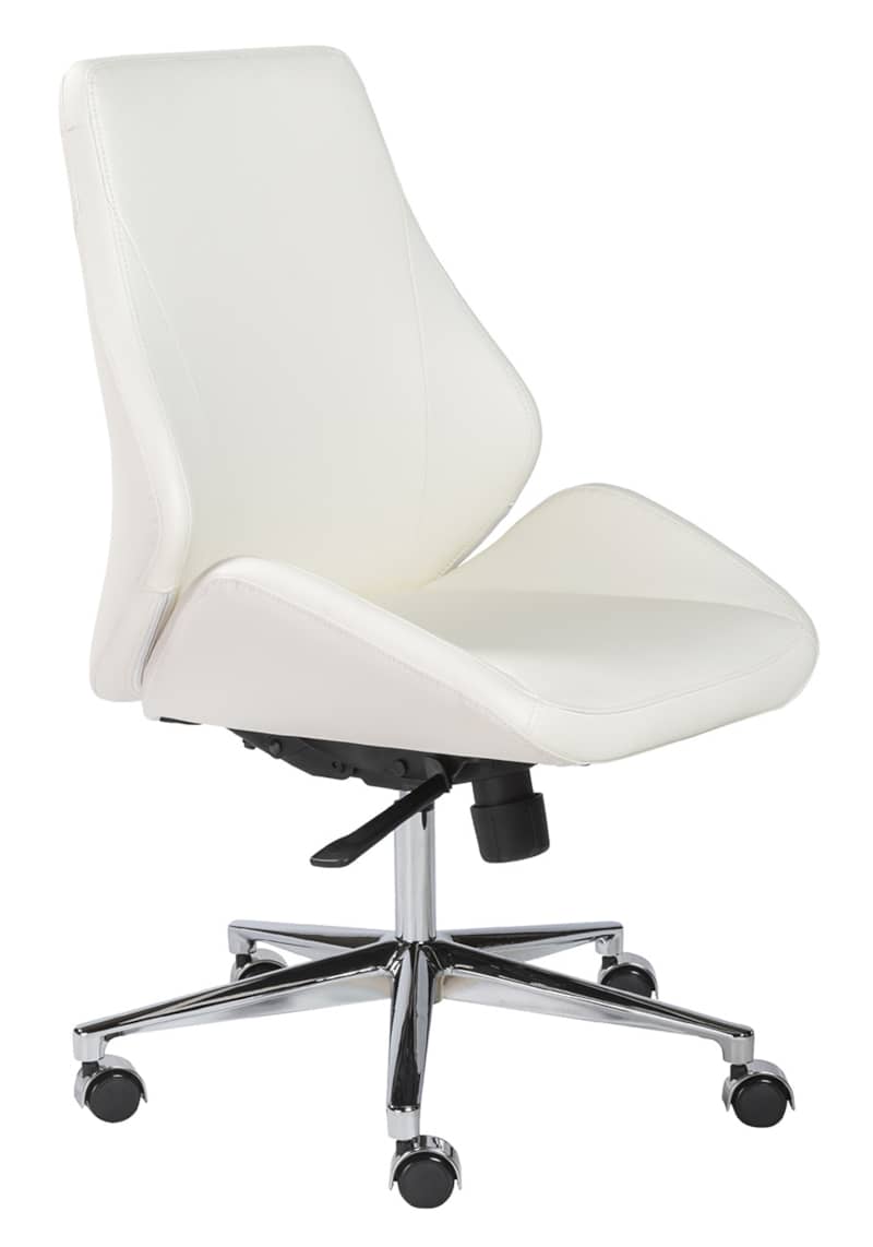 Euro Style 00470WHT Bergen White Low Back Office Chair w/ Chrome Aluminum BaseThe Bergen Office Chair is very modern looking with an ingenious seat and back. It looks like one graceful piece, but for added comfort and give, it??s two pieces, a separate seat and back. There is a space where the two would ordinarily come together. The result is remarkable comfort in very classy chair. Gorgeous. Features