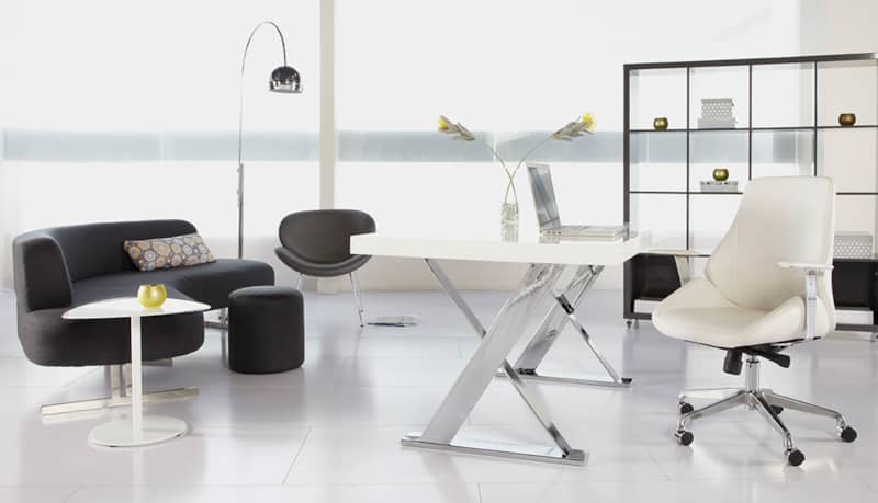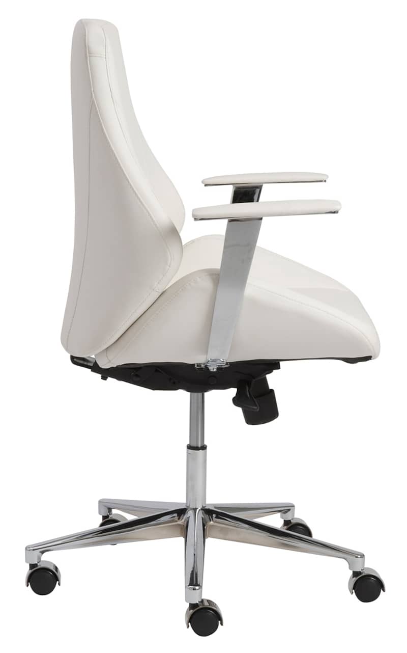 Euro Style 00475WHT Bergen White Low Back Office Chair w/ Chrome Steel BaseThe Bergen Office Chair is very modern looking with an ingenious seat and back. It looks like one graceful piece, but for added comfort and give, it??s two pieces, a separate seat and back. There is a space where the two would ordinarily come together. The result is remarkable comfort in very classy chair. Gorgeous. Features