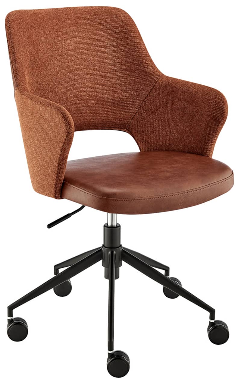 Euro Style 30394-DKBRN Darcie Office Chair In Dark Brown & Orange w/ Black BaseComfort should never compromise on style. With the Darcie Office Chair, you don??t have to. With a cushioned seating design and armrests, these designs render your office the optimal space for productivity. Features