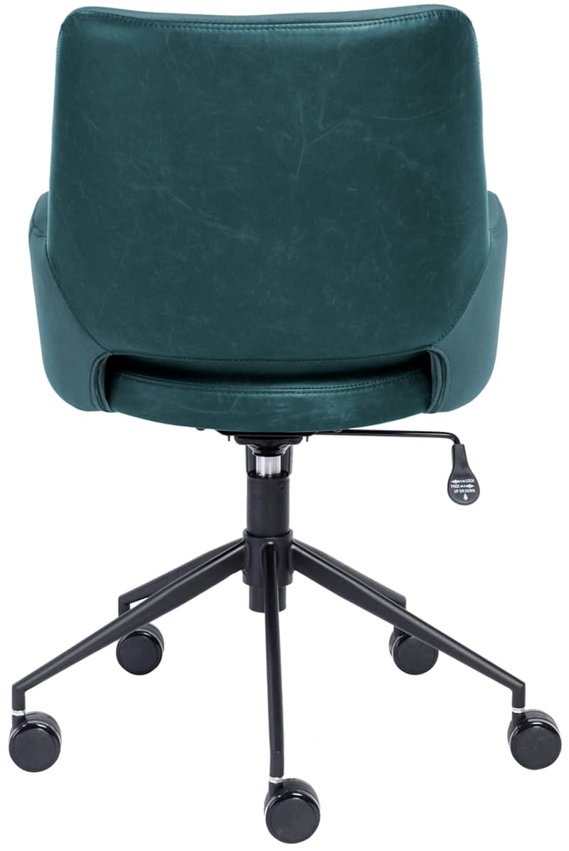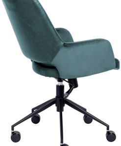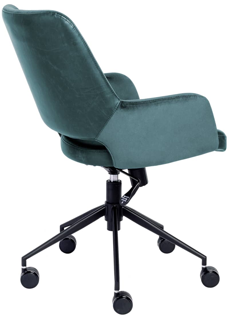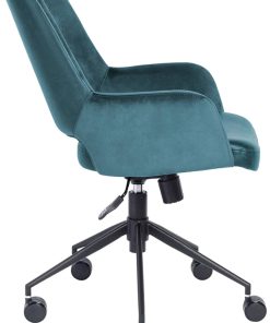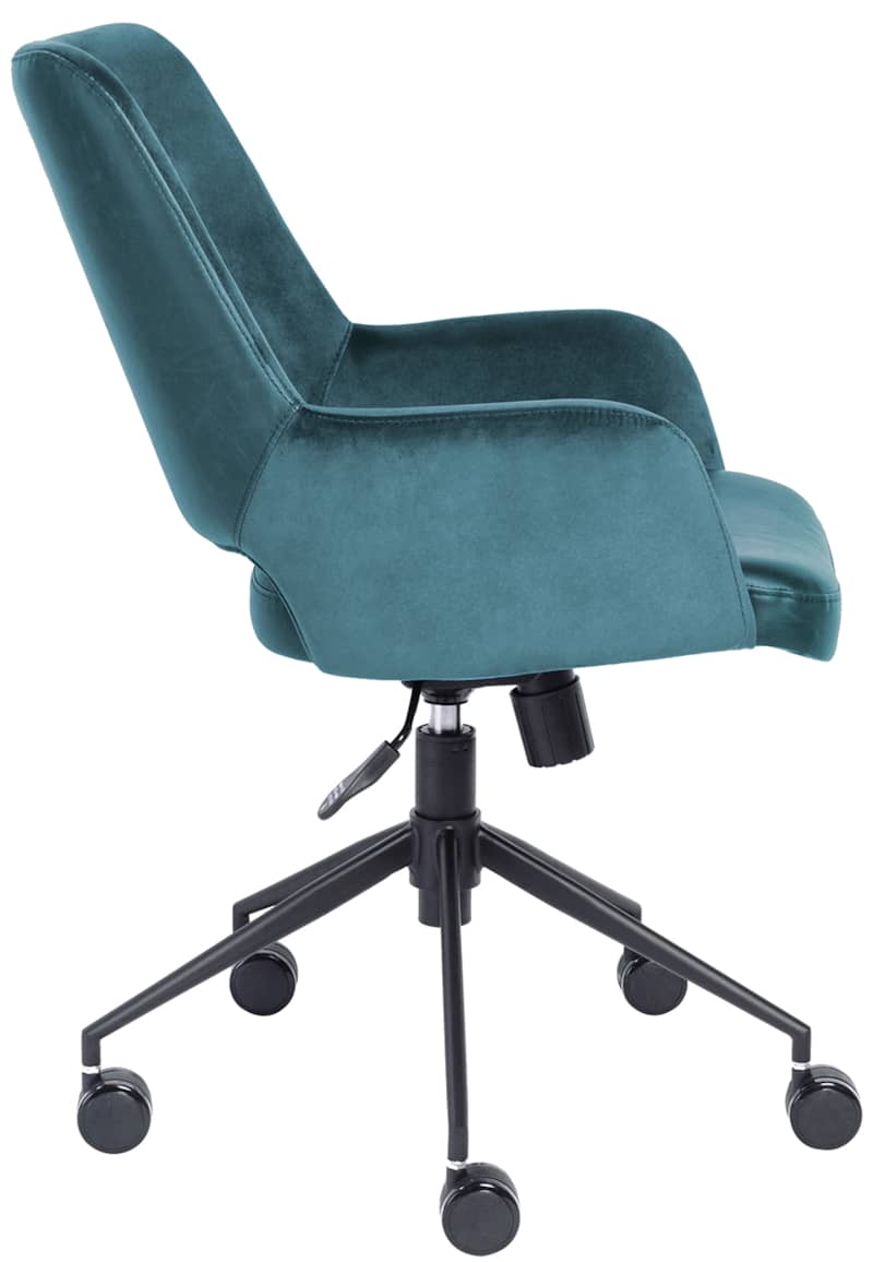 Euro Style 30492BLU Desi Tilt Office Chair In Blue “Velvet-like” Fabric & Leatherette w/ Black BaseThe Desi Collection rolls in with velvet-like fabric arms and inner back section with a leatherette seat and outer back section. Matte black powder coated steel base glides on large 60 mm casters. Height adjustable with tilting mechanism. Features