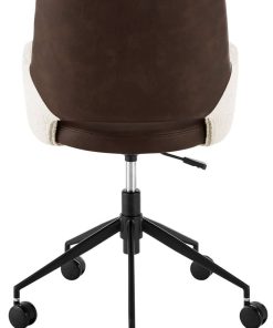 Euro Style 30483-IVRY Desi Office Chair in Ivory Fabric and Brown Leatherette w/ Black BaseThe Desi Collection rolls in with a vintage distressed soft leatherette seat paired with durable fabric back and armrests. Matte black powder coated steel base glides on large 60 mm casters. Height adjustable. Features