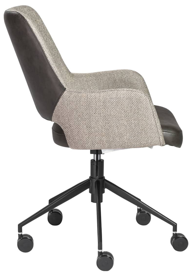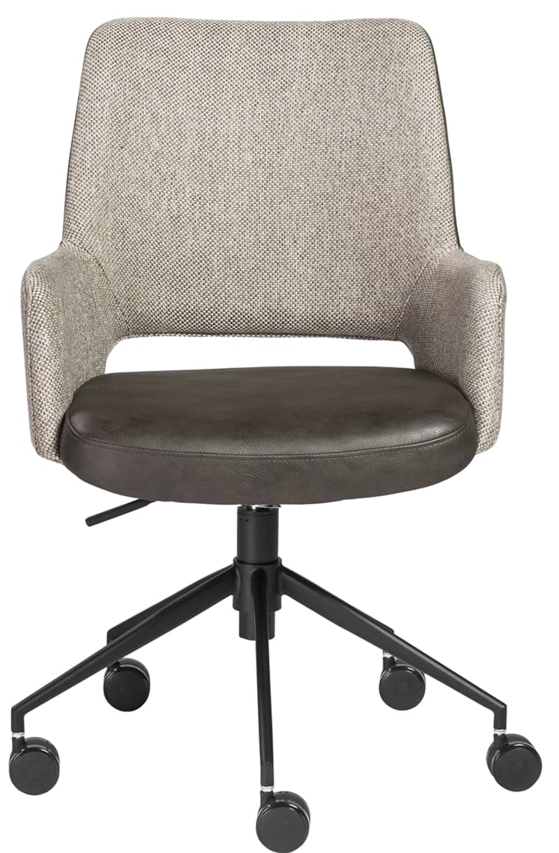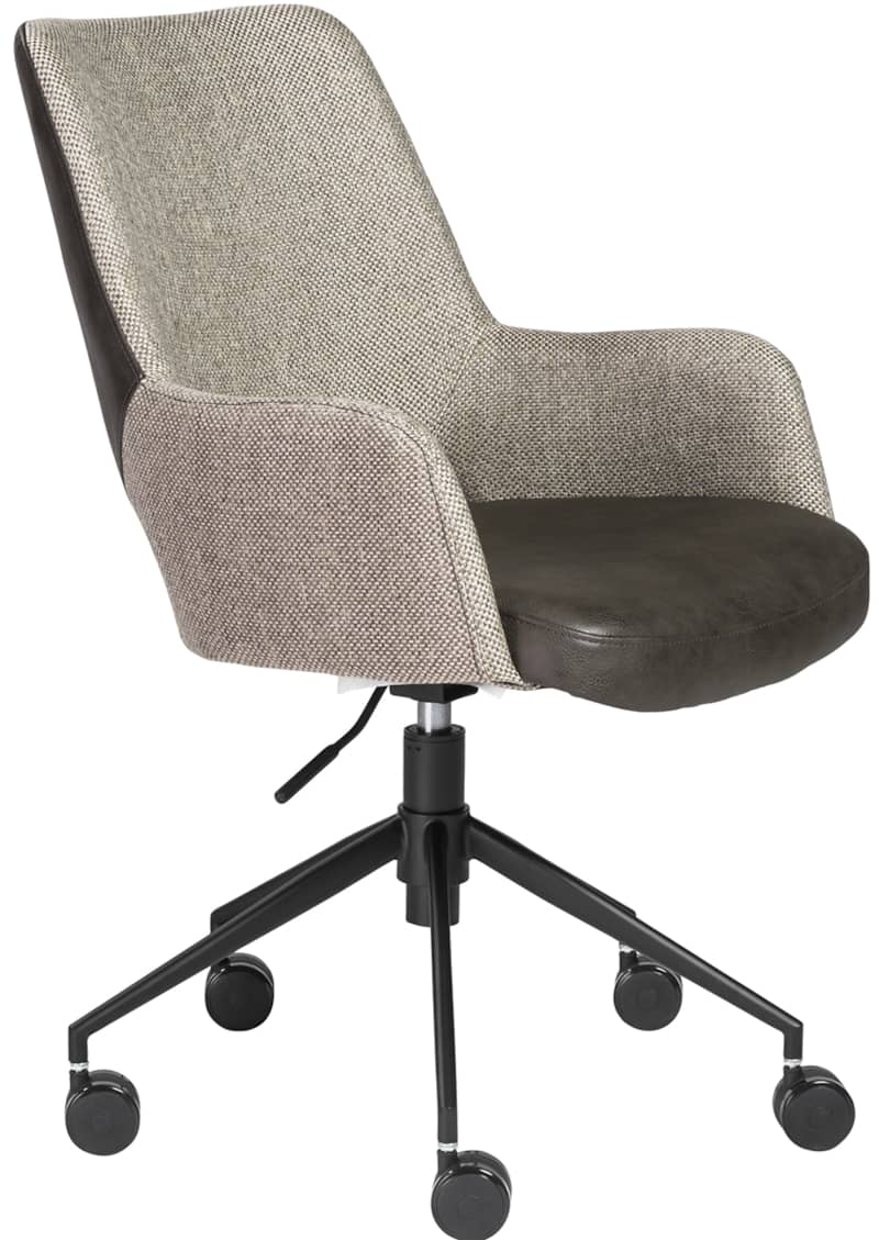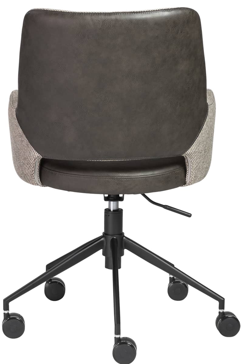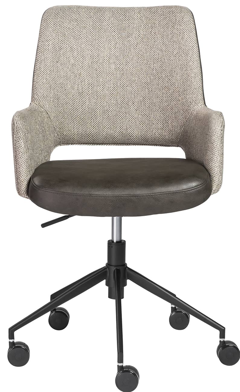 Euro Style 30481DKGRY Desi Tilt Office Chair In Light Gray and Dark Gray with Black BaseThe Desi Collection rolls in with a vintage distressed soft leatherette seat paired with durable fabric back and armrests. Matte black powder coated steel base glides on large 60 mm casters. Height adjustable with tilting mechanism. Features